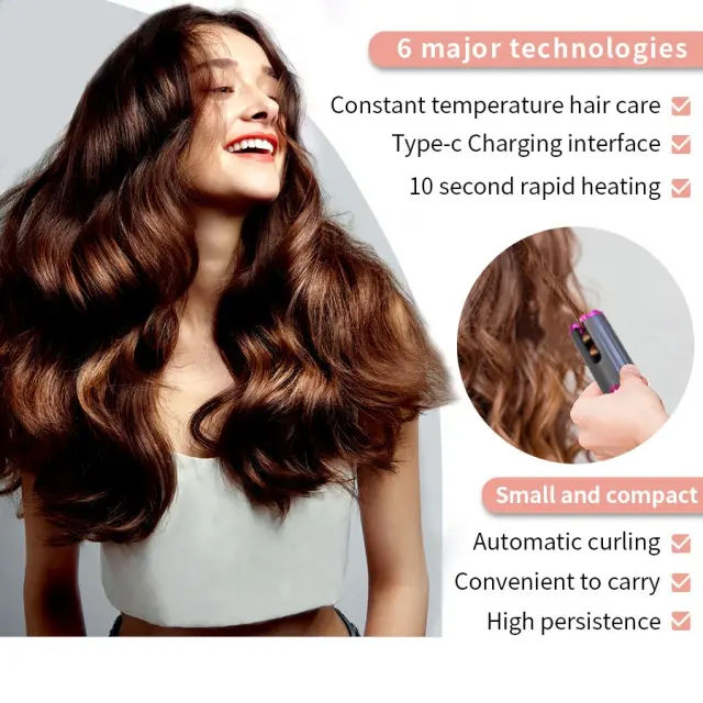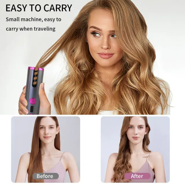 Enostavni kodri kjerkoli: Doživite svobodo ustvarjanja čudovitih, poskočnih kodrov na poti z našim brezžičnim samodejnim kodralnikom las. Ta inovativna naprava odpravlja težave z žicami, kar vam omogoča, da si uredite pričesko kjerkoli ste. Popoln za potovanja, vadbe v telovadnici ali hitre popravke pred sestankom, ta prenosni kodralnik las zagotavlja, da boste vedno izgledali najbolje. Samodejna funkcija kodranja poenostavlja postopek oblikovanja, kar vsakomur olajša doseganje kodrov salonske kakovosti brez kakršnih koli strokovnih veščin. Uživajte v doslednih, brezhibnih kodrih vsakič s tem priročnim in vsestranskim orodjem za oblikovanje las.