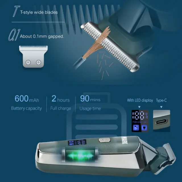Brezžični strižnik za lase WMARK NG-204 z LED zaslonom, polnilni (zelen)