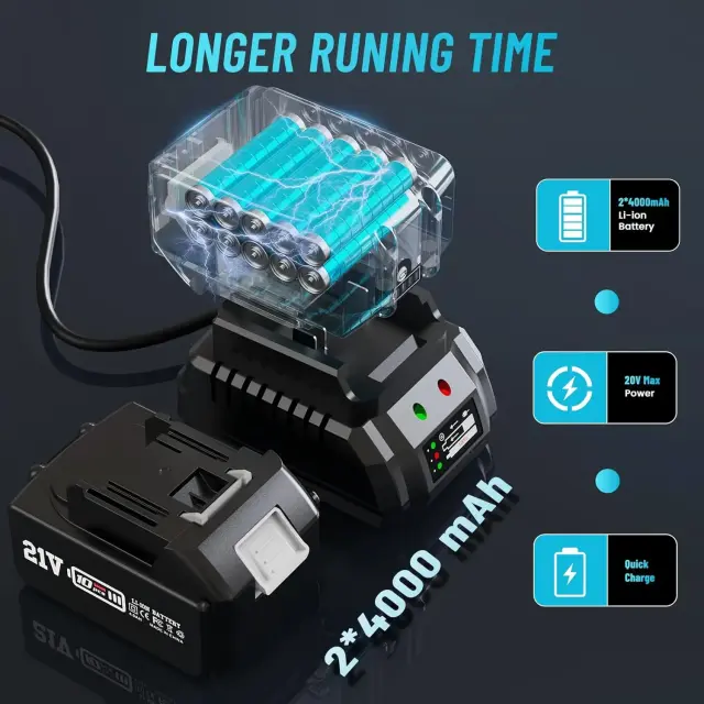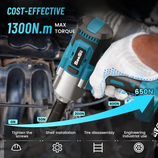 Brezžični udarni ključ, 1300 N·m navora, 5.0 Ah baterije, spremenljiva hitrost 3300 RPM, kompakten, lahek