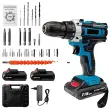 • Obsežen komplet dodatkov: Paket vključuje električni vrtalnik, dve bateriji, polnilec in 24 dodatkov, kar ponuja popolno rešitev za vaše potrebe po vrtanju in privijanju vijakov ter zagotavlja udobje in učinkovitost pri vašem delu.