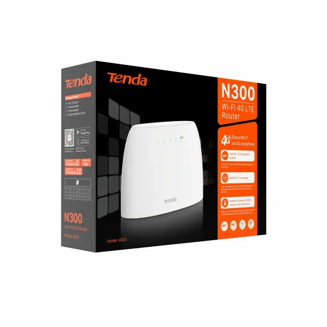 1x Usmerjevalnik 4G LTE Tenda, 1x Mrežni kabel, 1x Napajalnik, 1x Navodila