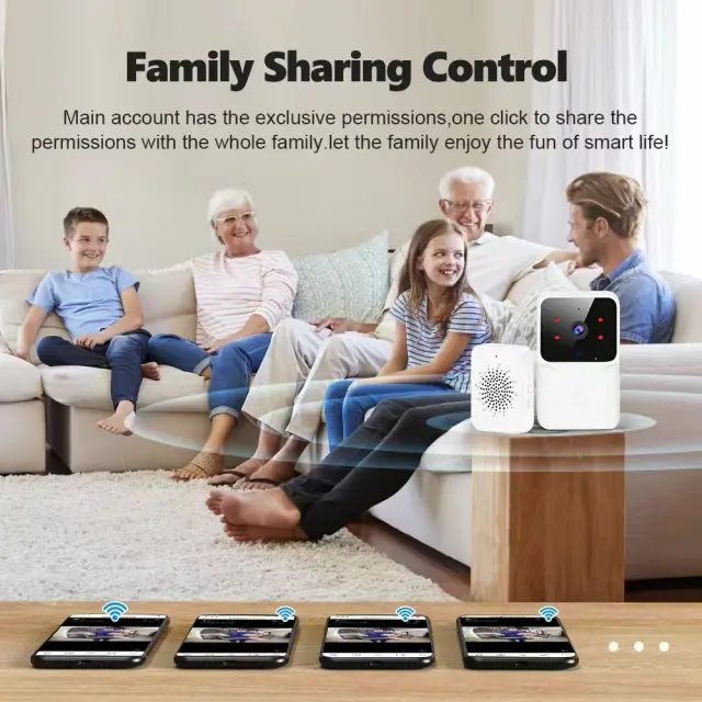 Skupna raba med več napravami: Zvonec M6 White Graffiti Edition podpira skupno rabo z do devetimi napravami, kar omogoča več članom družine ali gospodinjstva dostop do funkcij zvonca in njihovo upravljanje. To zagotavlja, da lahko vsi v gospodinjstvu prejemajo obvestila, si ogledajo video posnetke v živo in komunicirajo z obiskovalci. Funkcija skupne rabe je enostavna za nastavitev in upravljanje, kar zagotavlja brezhibno izkušnjo za vse uporabnike. Ne glede na to, ali gre za udobje ali varnost, je možnost skupne rabe dostopa med več napravami zvonec M6 vsestranski in dragocen dodatek za vsak dom.