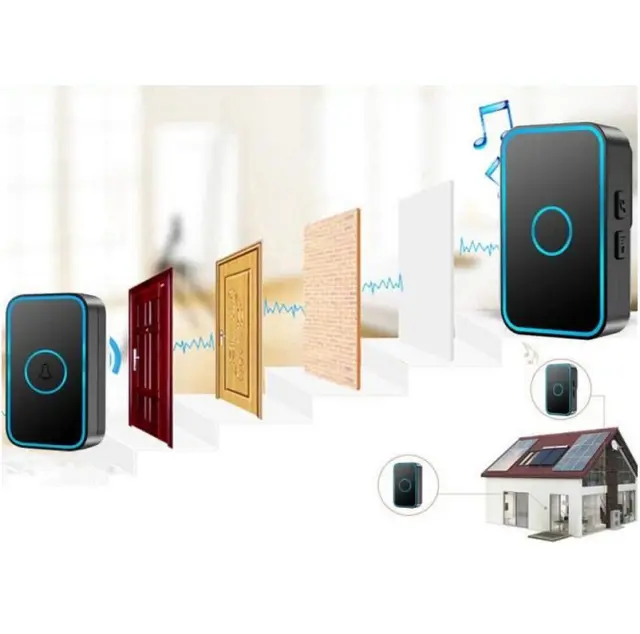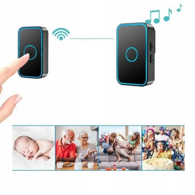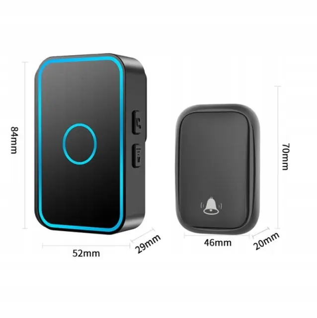 Rosfix Brezžični Zvonec – LED, 60 Melodij, IP55, 300 m Domet, 110 dB, Črn | Za Zunaj in Notranjost