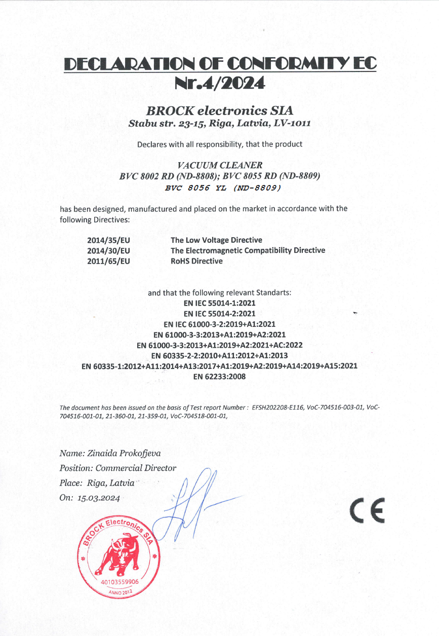BROCK ciklonski sesalec BVC 8056 YT, brez vrečke
