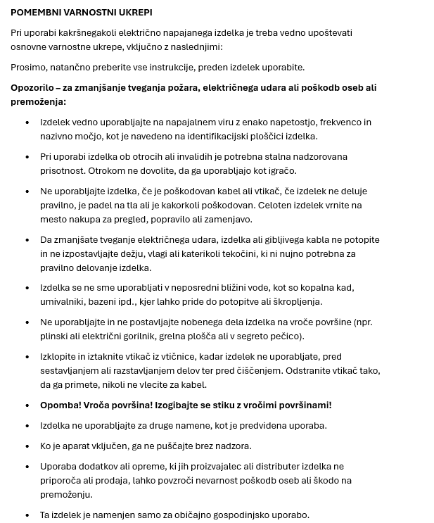 Slike o varnosti izdelka