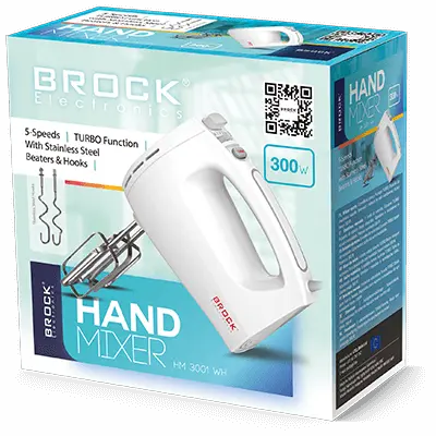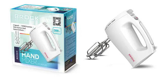 Ročni mešalnik.5 hitrosti.TURBO funkcija.Gumb za izmet za sprostitev nastavkov.S stepalniki in kavlji iz nerjavečega jekla.Moč: 300 W.Garancija: 12 mesecev