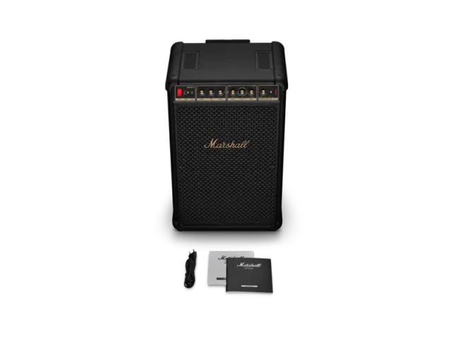 Prepoznavna črna vinilna tekstura, kontrastni brass detajli in legendarni Marshall logotip ustvarjajo brezčasen rock’n’roll videz. Zvočnik ni le avdio naprava, ampak tudi izrazit estetski element prostora.