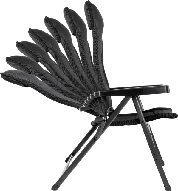 Sodoben zložljiv 4-nožni zunanji stol s 7-stopenjskim nagibnim naslonom.