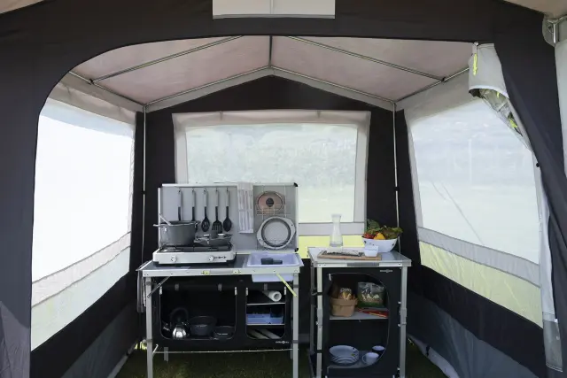 Šotor za kuhanje z dvokapno streho.