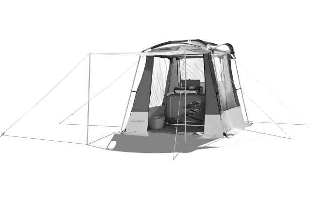 Kuhinjski šotor Dinery je idealna rešitev za vse, ki iščete priročen in zanesljiv prostor za kuhanje na prostem. Ta šotor je zasnovan za ljubitelje kampiranja, piknikov in vrtnih zabav, saj zagotavlja zaščiteno in funkcionalno okolje za pripravo in uživanje v vaših najljubših jedeh.