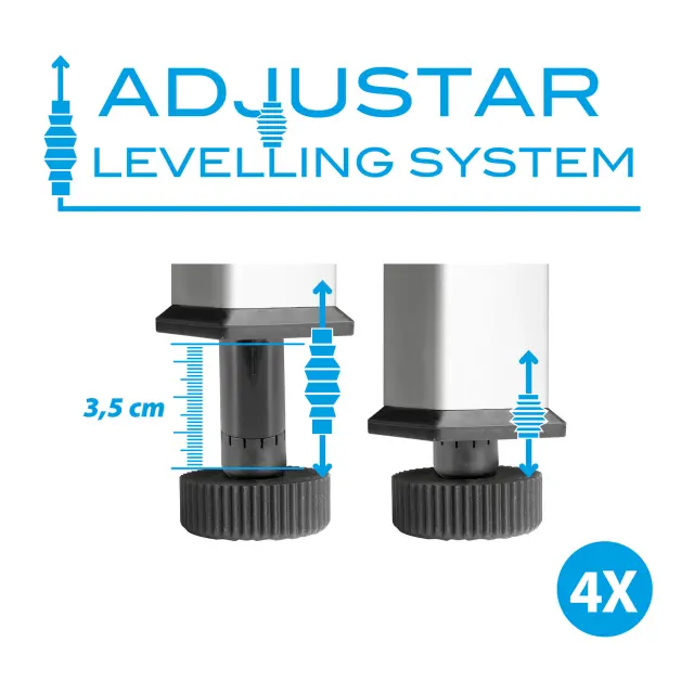 Elegantna različica modela Titanium Quadra NG. Aluminijasta kotalna plošča s končnimi letvicami iz pravega bambusovega lesa in vgrajeno nivelirko za popolno delovanje novega sistema za niveliranje 90° Adjustar. Z vrečko za pakiranje.