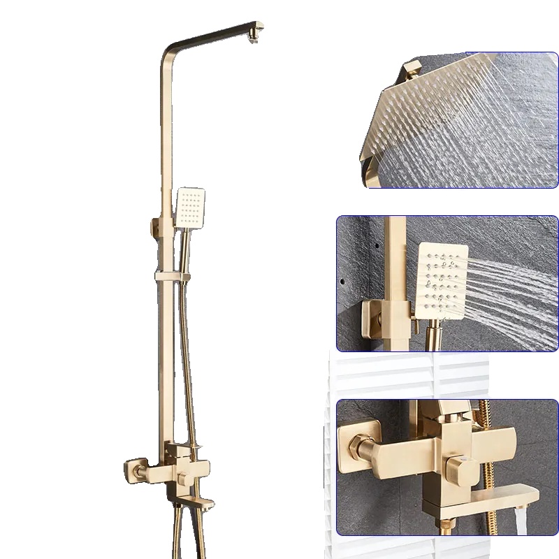 • Premium medeninasta površinska obdelava: Tuš set ima visokokakovostno medeninasto površinsko obdelavo, ki zagotavlja trajnost in luksuzen videz.