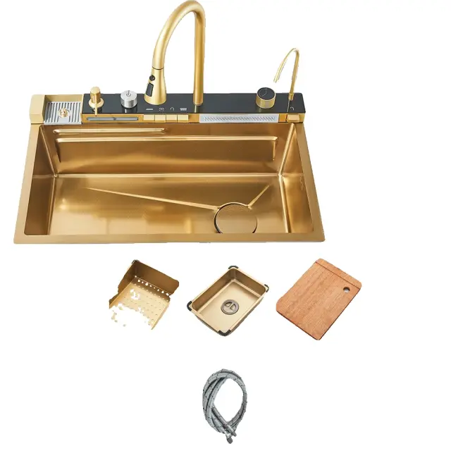 • Eleganten dizajn: Brušena zlata površina doda pridih razkošja vaši kuhinji, kar jo naredi za stilno središče, ki dopolnjuje vsak dekor.