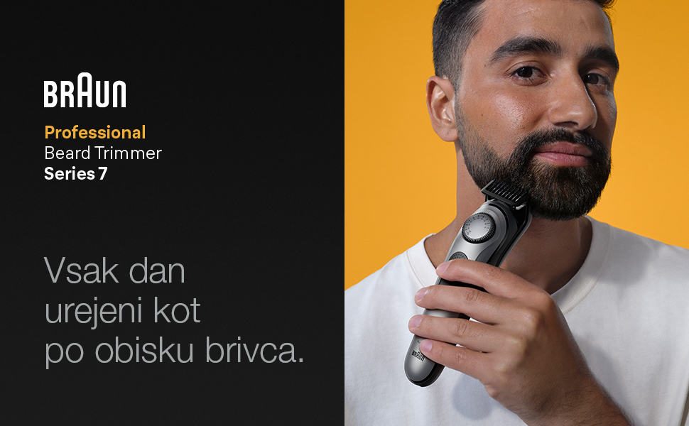 Skrajna natančnost in 100-odstoten nadzor z Braunovim profesionalnim urejevalnikom brade serije 7.
