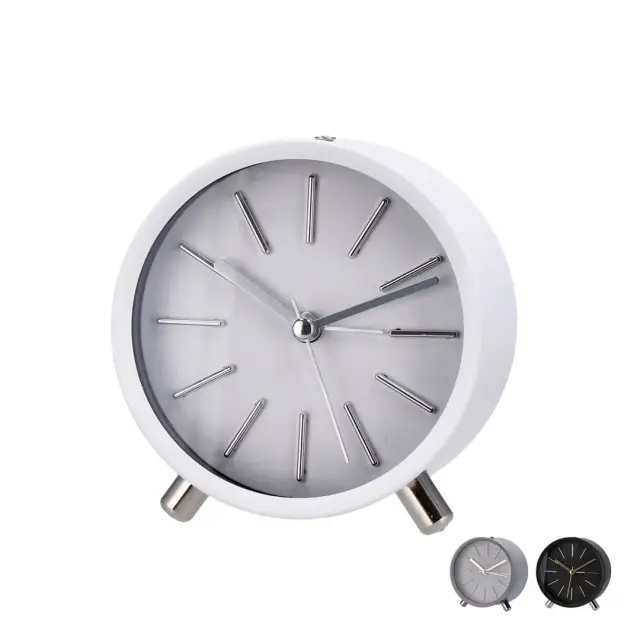 Okrogla budilka z minimalističnim dizajnom ima premer 9,5 cm, visoka pa je 10 cm. Na voljo je v več barvah, kar omogoča prilagoditev vsakemu prostoru. Idealna je za nočne omarice ali pisalne mize, saj združuje funkcionalnost in estetsko dovršenost. Deluje na baterijo AA, ki ni priložena.