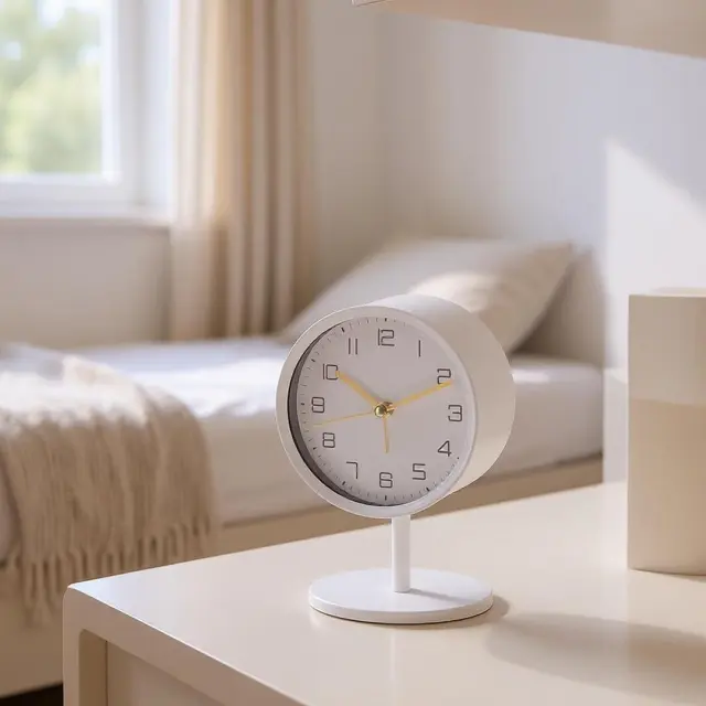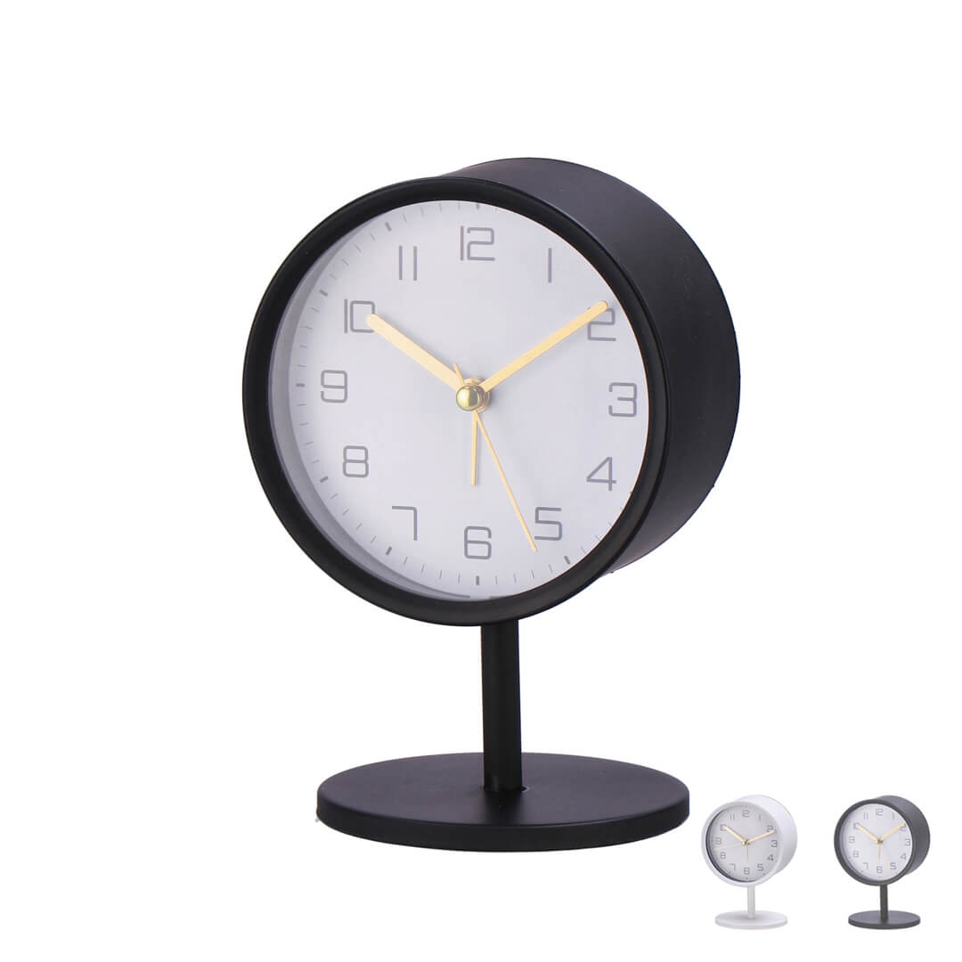 Sodobna budilka z okroglo številčnico in minimalističnim dizajnom je postavljena na eleganten podstavek, zato je visoka 14 cm. Na voljo je v več barvah, kar omogoča prilagoditev vsakemu prostoru. Idealna je za nočne omarice ali pisalne mize, saj združuje funkcionalnost in estetsko dovršenost. Deluje na baterijo AA, ki ni priložena.