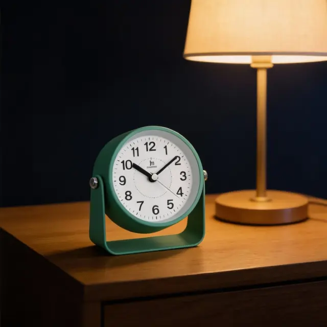 Sodobna budilka se ponaša z alarmom, lakiranim kovinskim ohišjem in zaščitnim steklom, ki ščiti številčnico. Sekundni kazalec se premika gladko in tiho, kar zagotavlja nemoten spanec brez nadležnega tikanja (Sweep Movement). Zvonjenje se začne tiho in postopoma narašča (Crescendo), kar omogoča prijetnejše prebujanje. Funkcija dremeža (Snooze) omogoča ponovni zagon bujenja vsakih 5 minut, osvetlitev pa olajša pogled na uro tudi v temi. Budilka deluje na AA baterijo, ki ni priložena.
