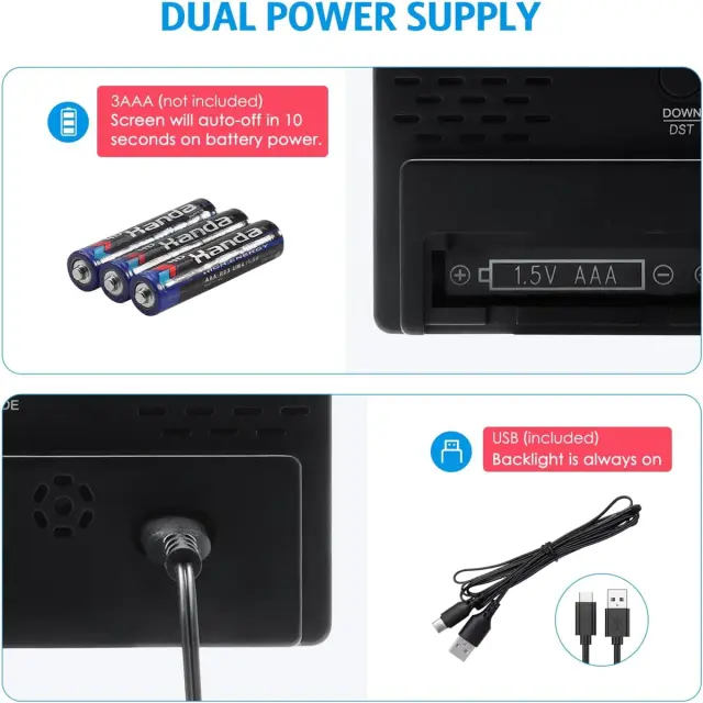 Napajanje USB in funkcija pomnilnika: Neprekinjen prikaz prek napajanja USB, medtem ko se baterije uporabljajo le za shranjevanje podatkov v primeru izpada električne energije.