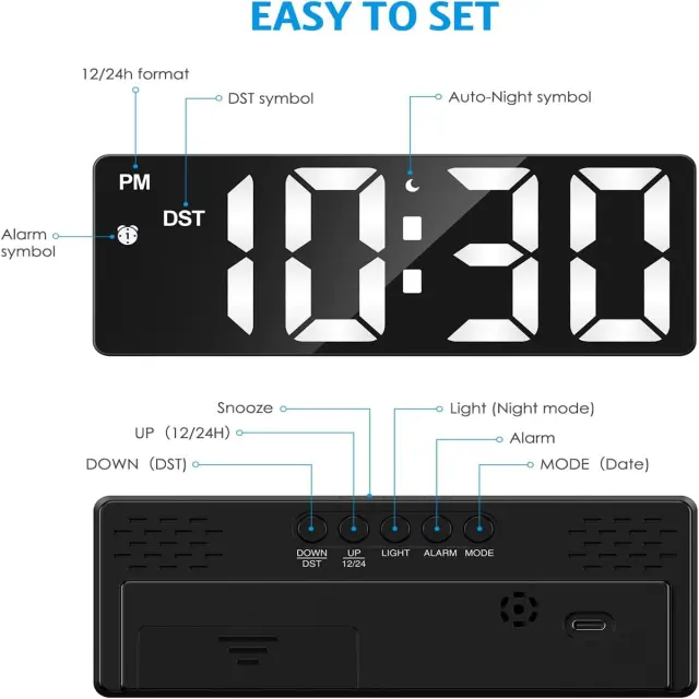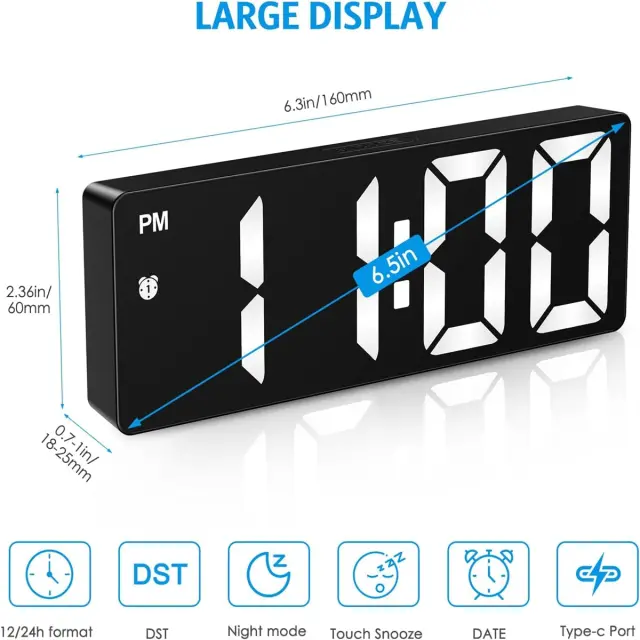 Velik 6,5-palčni LED-zaslon: Jasen in dobro viden numerični prikaz za prijetno vizualno izkušnjo, idealen za vsako spalnico.