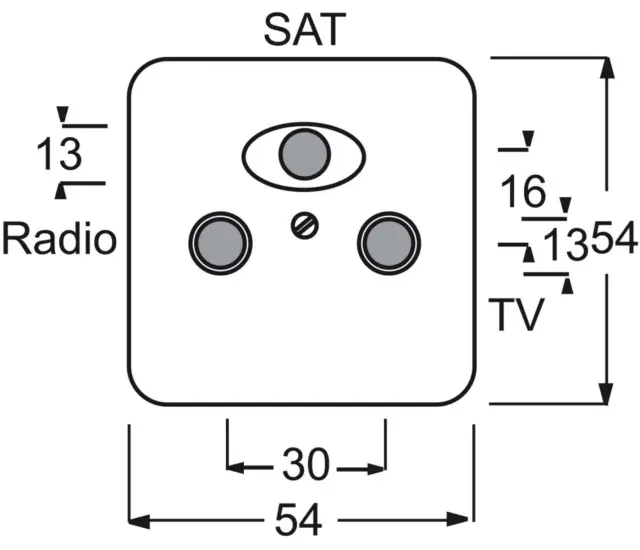 Min. Globina škatle za napravo: 40 mmBusch-Jaeger centralni disk aws 1743-03-214: več podrobnostiS 3 priključki. Radio/TV/SAT. Z osrednjim pritrdiščem M3. Glej vstavke za antenske vtičnice. EAN: 4011395538005