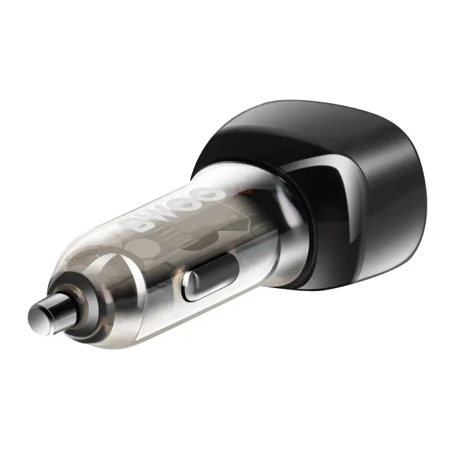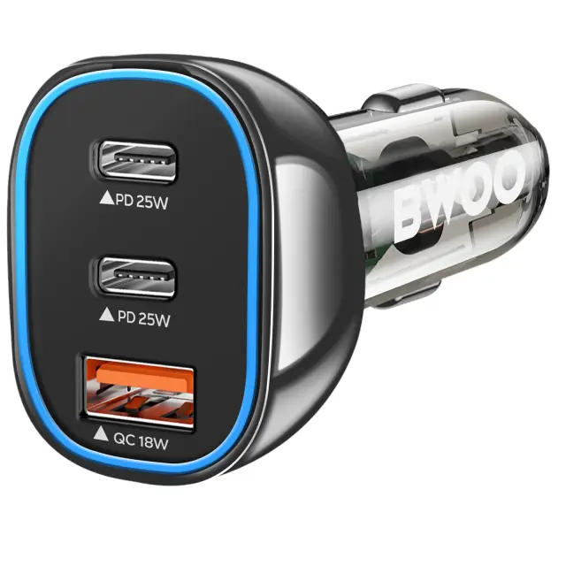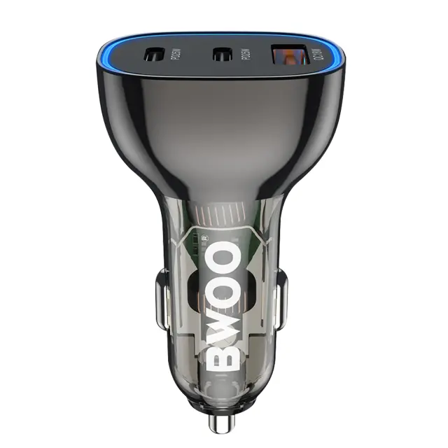 Bwoo, Avtomobilski polnilec 2 USB-C + USB Rapid Charge 65W z LED osvetlitvijo, Prozorno črna