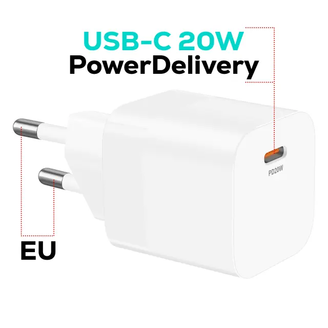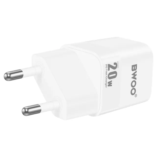 Bwoo 20W beli omrežni polnilnik USB-C za polnjenje naprav. Podpora Power Delivery za izjemno hitro in optimizirano polnjenje. Vgrajeni pametni čip prilagodi moč glede na napravo. Univerzalni priključek USB-C, združljiv z večino sodobnih naprav.