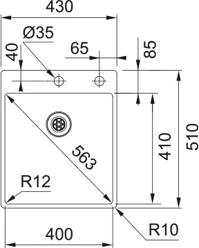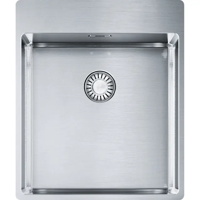 Model: BXX 210-40 A Omarica: 45 cm Dimenzije: 430 x 510 mm Izrez: 410 x 490 mm (R = 10 mm) Velikost posode: 400 / 410 / 200 mm Vgradnja/namestitev: Slim Top, plosko vgradno Material: polirano nerjaveče jeklo Ventil: integralni izlivni ventil Regulacija ventila: potisni gumb iz nerjavečega jekla Preliv: integriran preliv s pokrivno ploščico Delovna plošca: minimalna debelina 12 mm