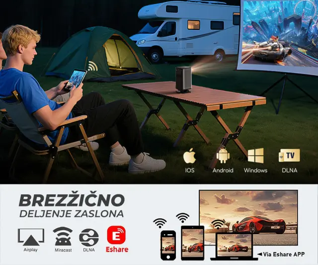 Prenosni 3D LED DLP projektor BYINTEK UFO P70X, Android, 2 GB + 32 GB, daljinec, črn