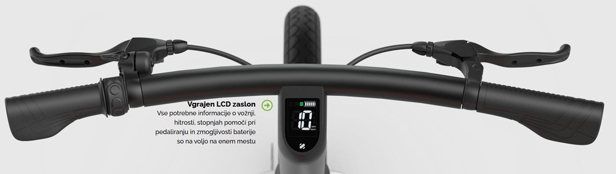 Ergonomsko in zelo logično nameščeni ročaji za nadzor stopnje električne pomoči, sprednje in zadnje zavore ter neizogiben zvonec vam bodo omogočili enostavno in varno upravljanje tega posebnega eKolesa.