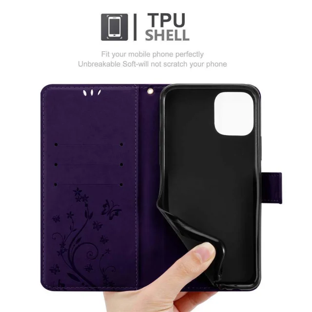CADORABO Apple iPhone 11 PRO MAX v klasična temno modra - ovitek v cvetličnem dizajnu z magnetnim zapiranjem, stoječo funkcijo in režami za kartice