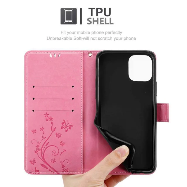 CADORABO Apple iPhone 11 PRO v klasična zlata - ovitek v cvetličnem dizajnu z magnetnim zapiranjem, stoječo funkcijo in režami za kartice