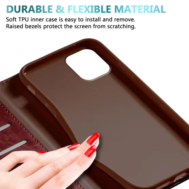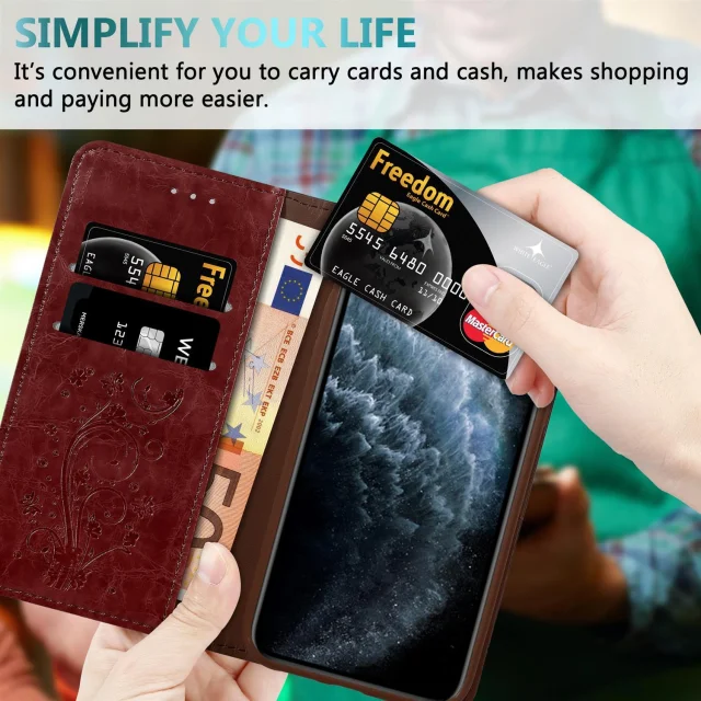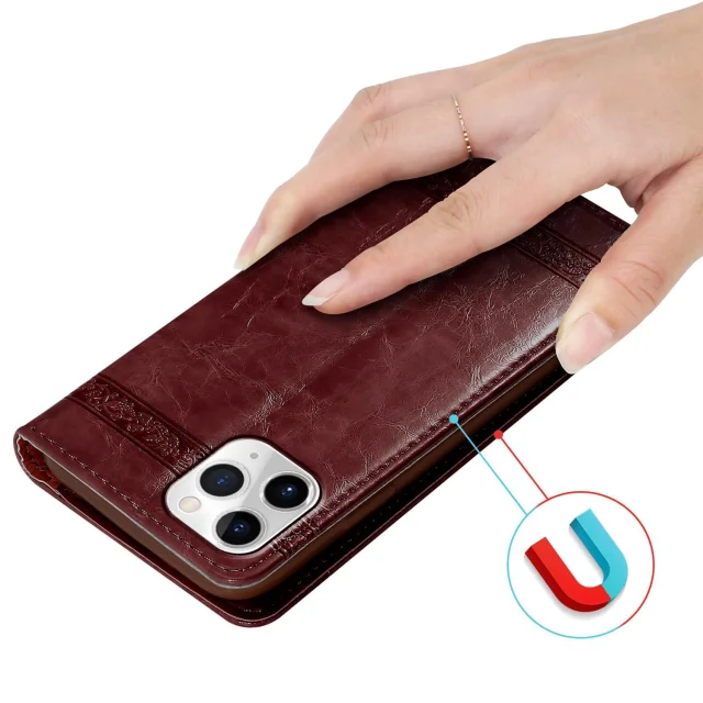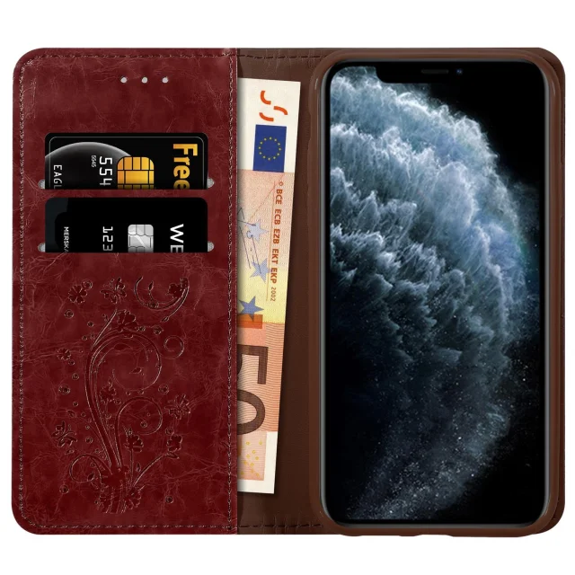 CADORABO Apple iPhone 11 PRO v temno rdeča z okraski - Zaščitni ovitek z magnetnim zapiranjem, funkcijo stojala in režo za kartice