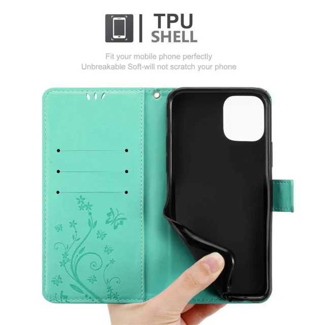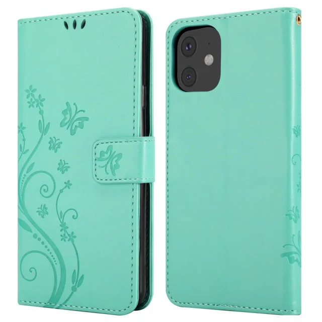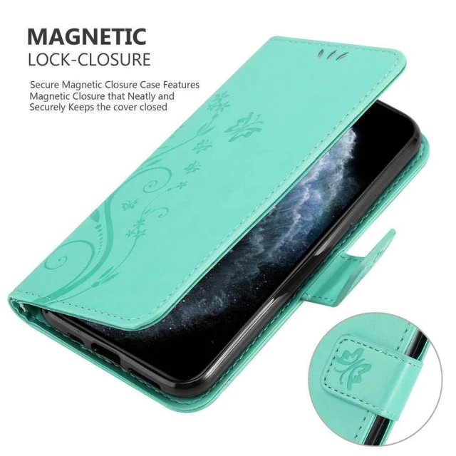 CADORABO Apple iPhone 11 v klasično srebrno - ovitek v cvetličnem dizajnu z magnetnim zapiranjem, stoječo funkcijo in režami za kartice