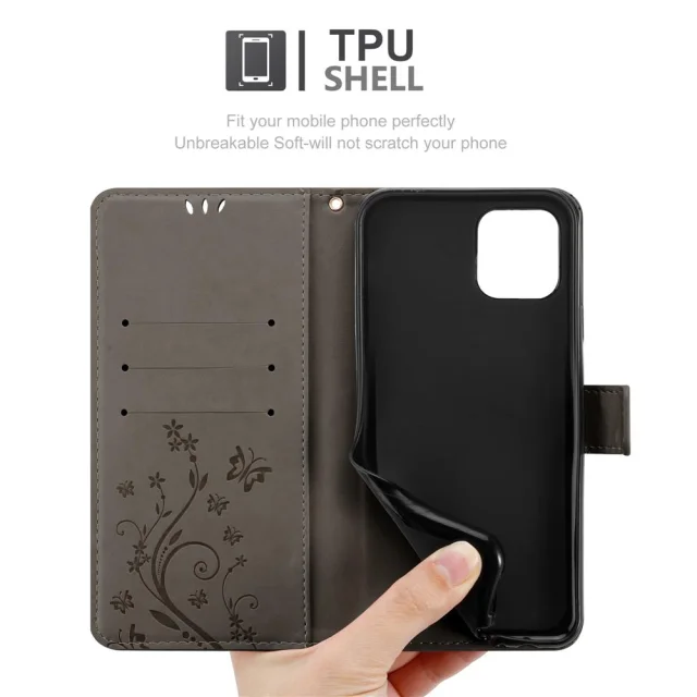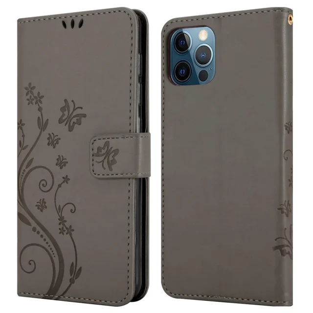 CADORABO Apple iPhone 12/12 PRO v klasična črna - ovitek v cvetličnem dizajnu z magnetnim zapiranjem, stoječo funkcijo in režami za kartice