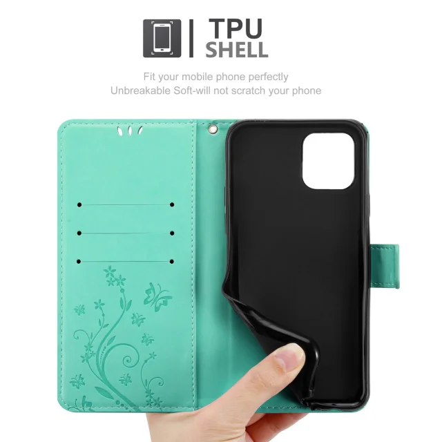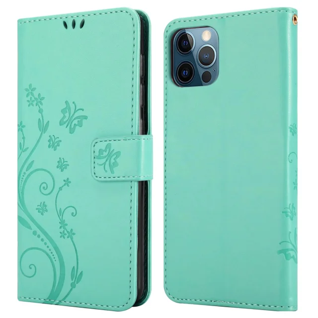 CADORABO Apple iPhone 12/12 PRO v klasično srebrno - ovitek v cvetličnem dizajnu z magnetnim zapiranjem, stoječo funkcijo in režami za kartice