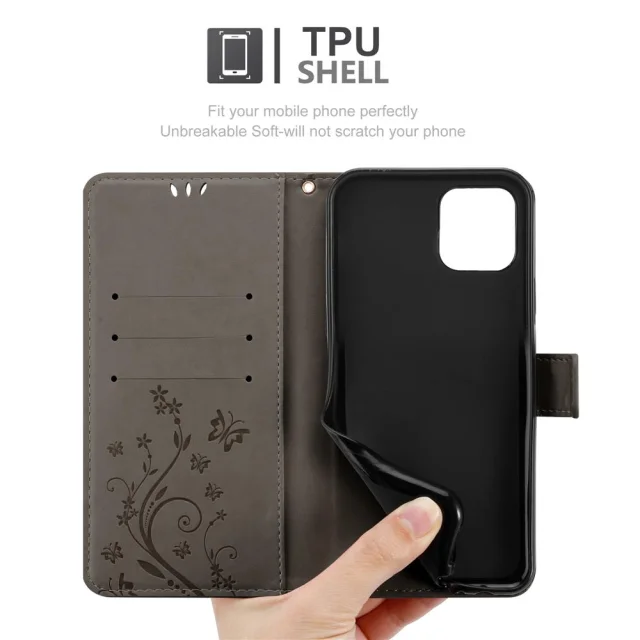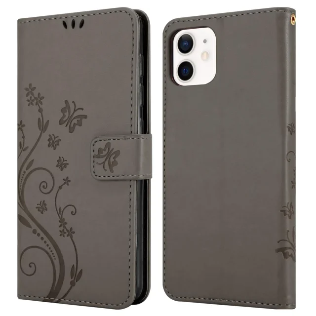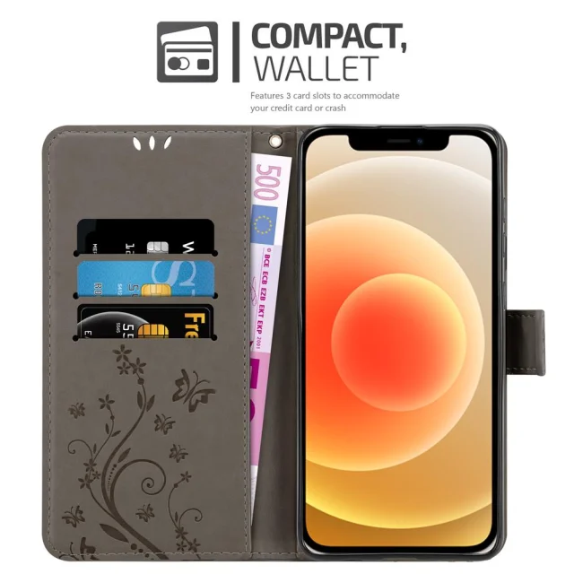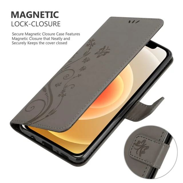 CADORABO Apple iPhone 12 MINI v klasična črna - ovitek v cvetličnem dizajnu z magnetnim zapiranjem, stoječo funkcijo in režami za kartice