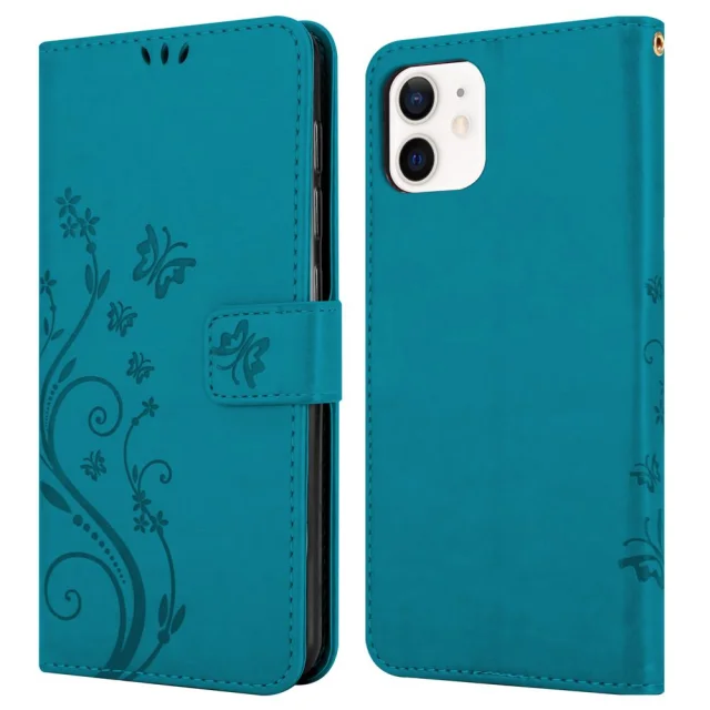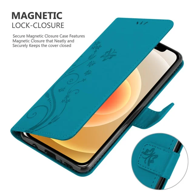CADORABO Apple iPhone 12 MINI v klasična rožnata zlata - ovitek v cvetličnem dizajnu z magnetnim zapiranjem, stoječo funkcijo in režami za kartice