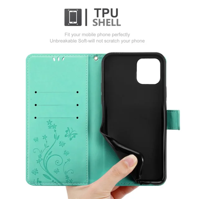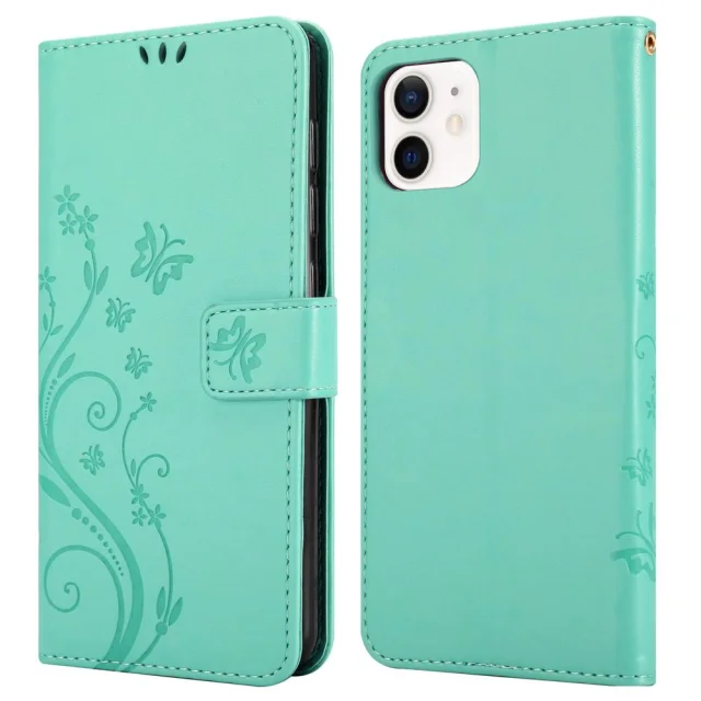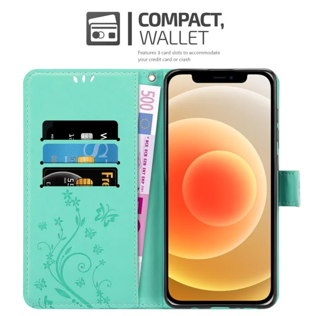CADORABO Apple iPhone 12 MINI v klasično srebrno - ovitek v cvetličnem dizajnu z magnetnim zapiranjem, stoječo funkcijo in režami za kartice