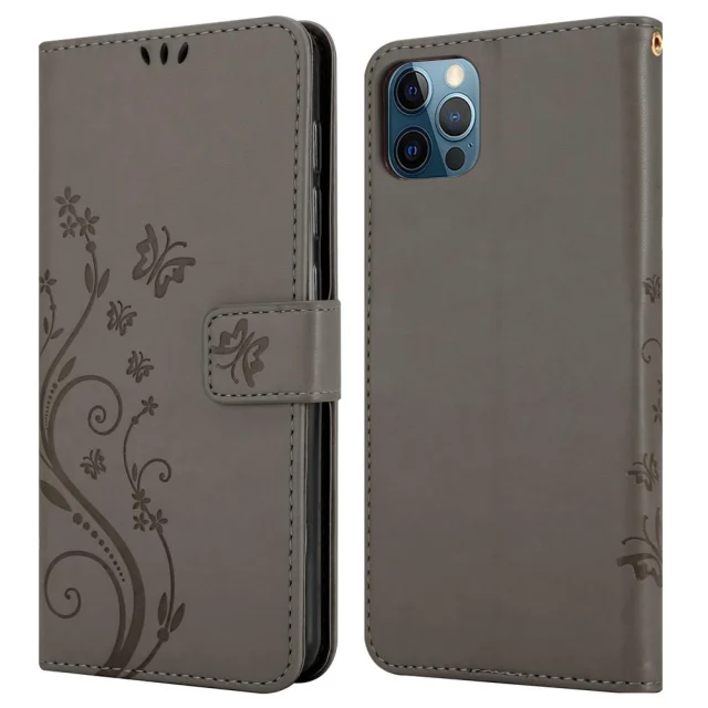 CADORABO Apple iPhone 12 PRO MAX v klasična črna - ovitek v cvetličnem dizajnu z magnetnim zapiranjem, stoječo funkcijo in režami za kartice