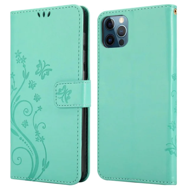 CADORABO Apple iPhone 12 PRO MAX v klasično srebrno - ovitek v cvetličnem dizajnu z magnetnim zapiranjem, stoječo funkcijo in režami za kartice