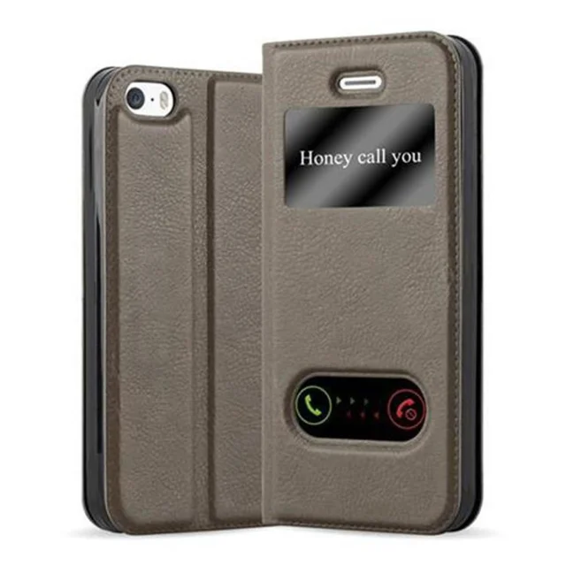 CADORABO Apple iPhone 5/5S/SE 2016 v kamnito rjava - Zaščitni ovitek z magnetnim zapiranjem, stoječo funkcijo in 2 okencema za gledanje