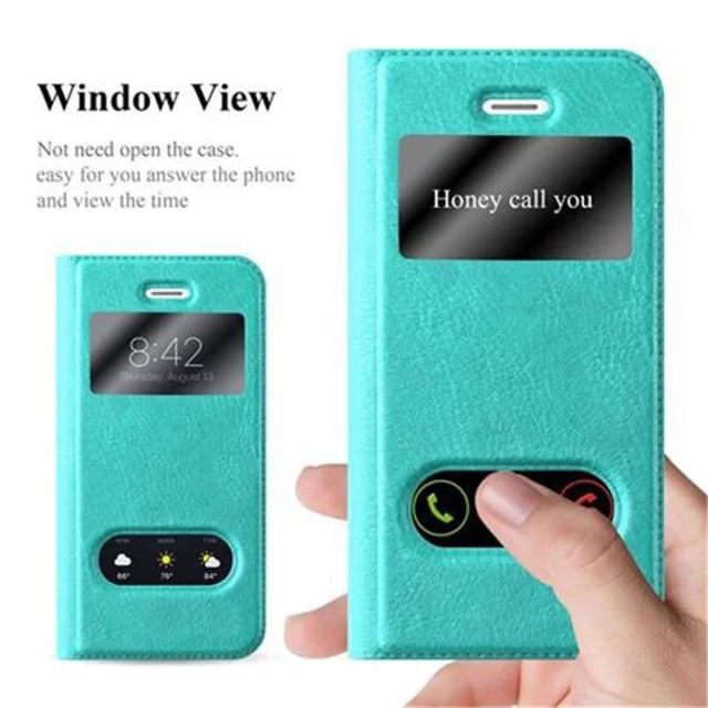 CADORABO Apple iPhone 5/5S/SE 2016 v mint turquoise - Zaščitni ovitek z magnetnim zapiranjem, stoječo funkcijo in 2 okencema za gledanje
