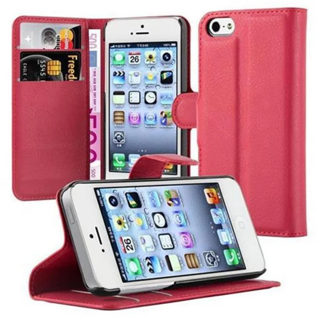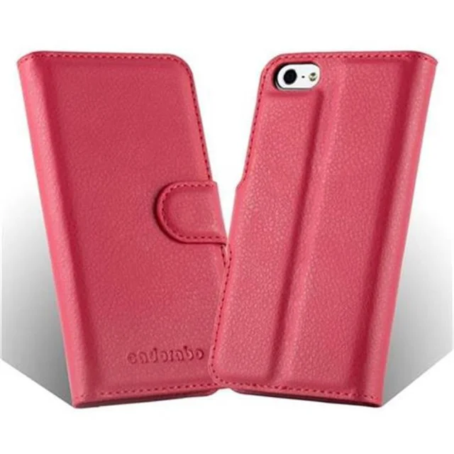 CADORABO Apple iPhone 5/5S/SE 2016 v rdeče sladkorno jabolko - Zaščitni ovitek z magnetnim zapiranjem, stoječo funkcijo in režo za kartice