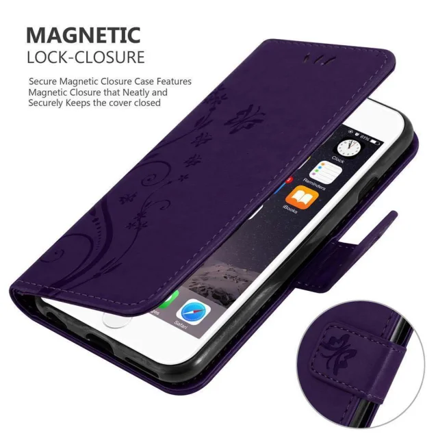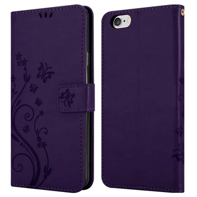 CADORABO Apple iPhone 6 PLUS/6S PLUS temno modra - ovitek v cvetličnem dizajnu z magnetnim zapiranjem, stoječo funkcijo in režami za kartice