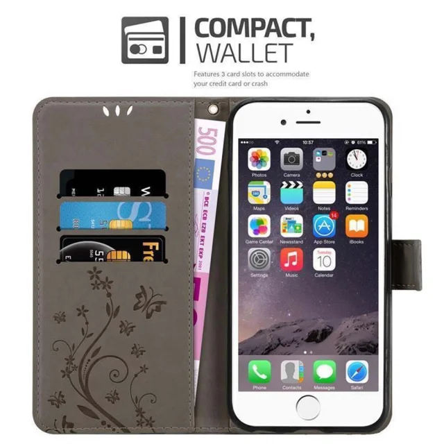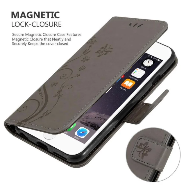 CADORABO Apple iPhone 6 PLUS/6S PLUS v klasična črna - ovitek v cvetličnem dizajnu z magnetnim zapiranjem, stoječo funkcijo in režami za kartice
