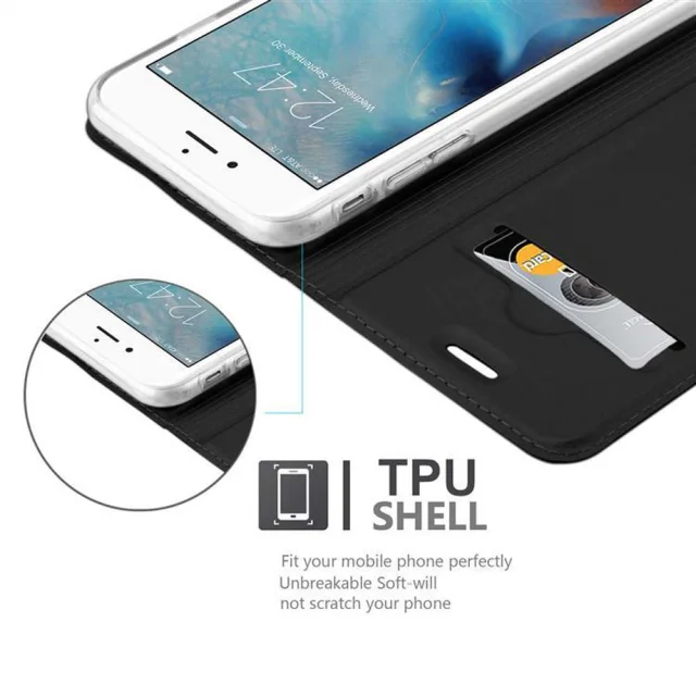 CADORABO Apple iPhone 6 PLUS/6S PLUS v klasična črna - Zaščitni ovitek z magnetnim zapiranjem, stoječo funkcijo in režo za kartice