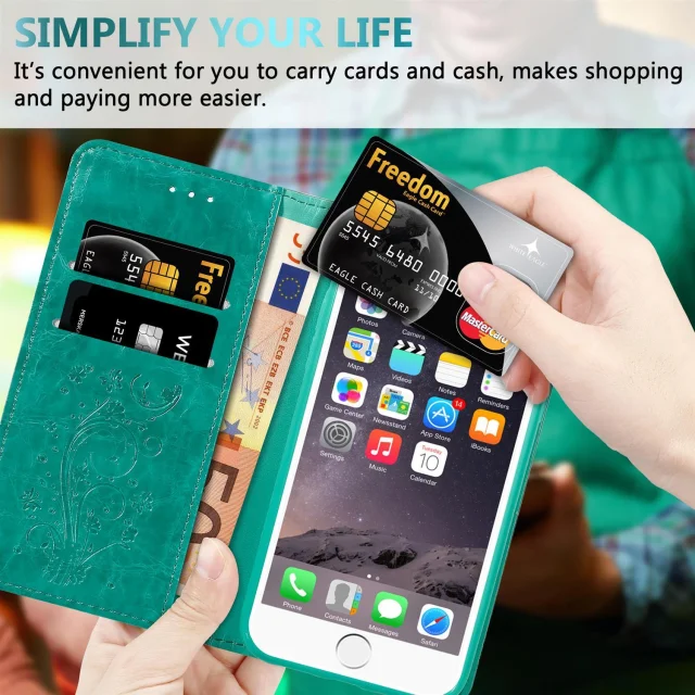 CADORABO Apple iPhone 6 PLUS/6S PLUS v turkizna z okraski - Zaščitni ovitek z magnetnim zapiranjem, funkcijo stojala in režo za kartice