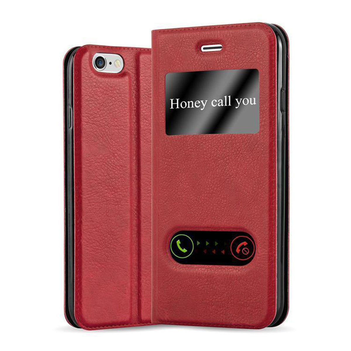 CADORABO Apple iPhone 6 PLUS/6S PLUS v žafranovo rdeča - Zaščitni ovitek z magnetnim zapiranjem, stoječo funkcijo in 2 okencema za gledanje