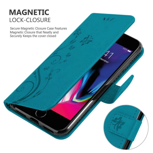 CADORABO Apple iPhone 7/7S/8/SE 2020 rožnato zlata - ovitek v cvetličnem dizajnu z magnetnim zapiranjem, stoječo funkcijo in režami za kartice