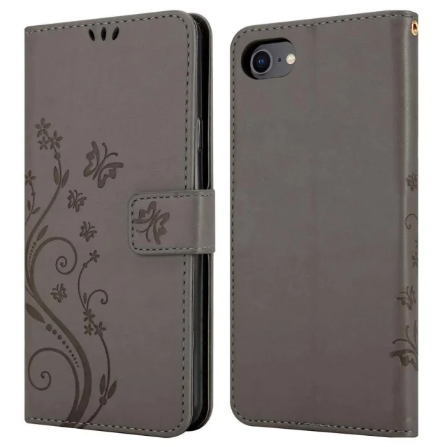 CADORABO Apple iPhone 7/7S/8/SE 2020 v klasična črna - ovitek v cvetličnem dizajnu z magnetnim zapiranjem, stoječo funkcijo in režami za kartice